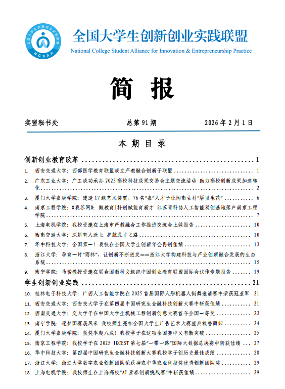 点击下载本期简报:【第91期】全国大学生创新创业实践联盟简报.pdf