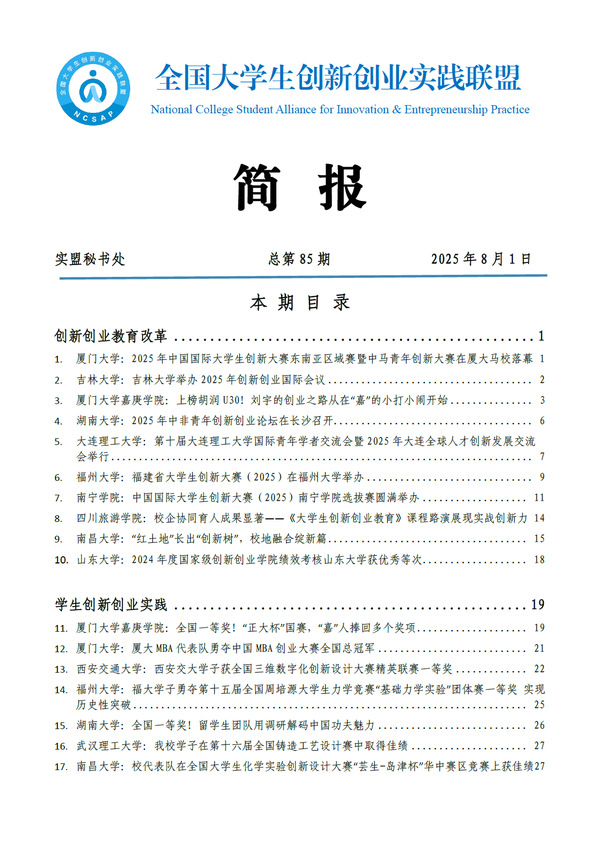 全国大学生创新创业实践联盟简报(第85期)2025-08-01