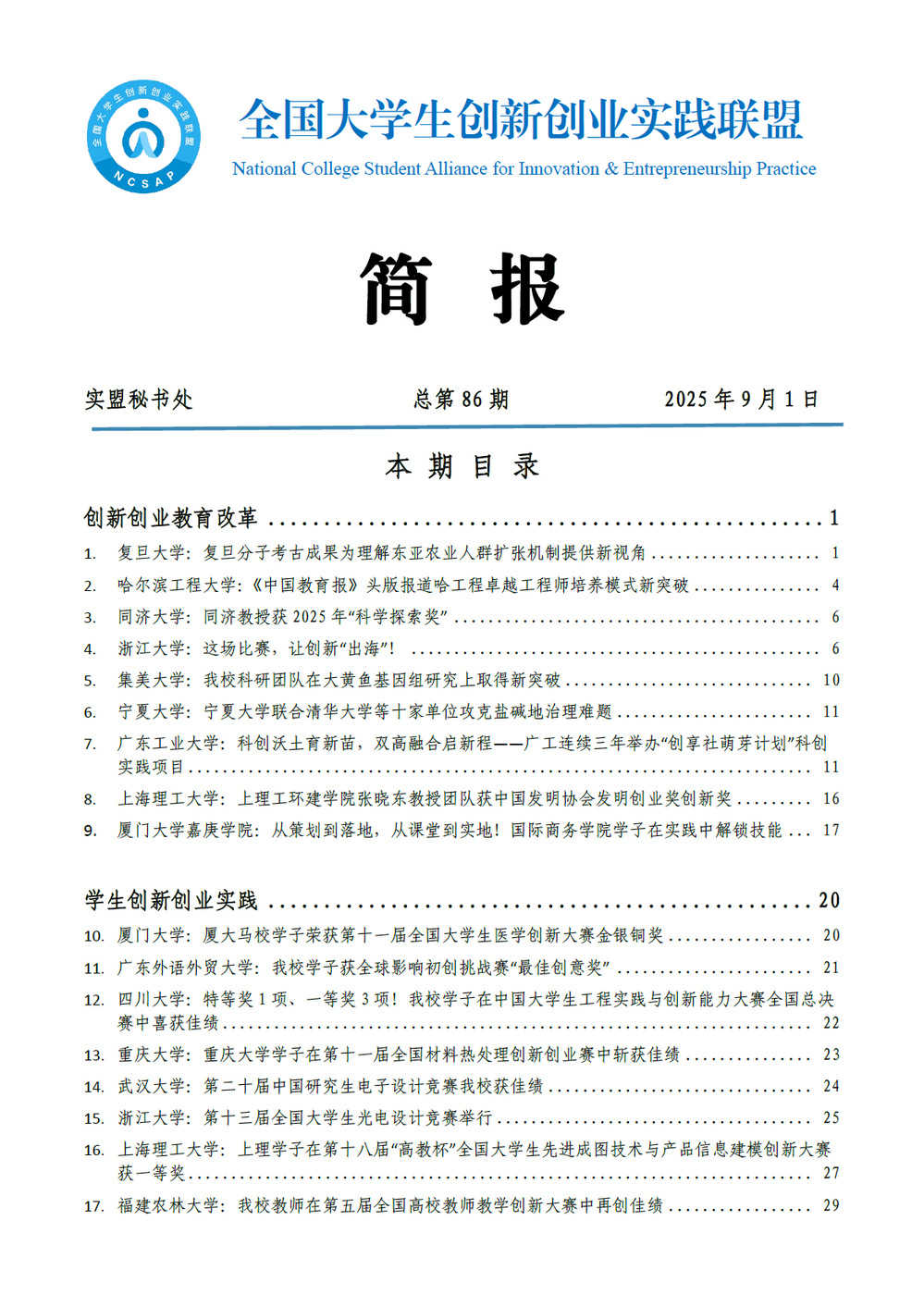 全国大学生创新创业实践联盟简报(第86期)2025-09-01
