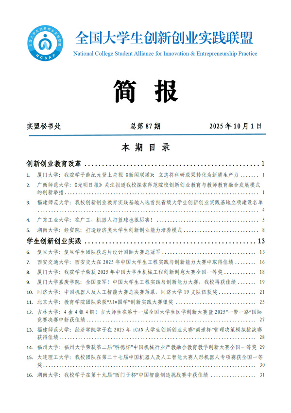 全国大学生创新创业实践联盟简报(第87期)2025-10-01